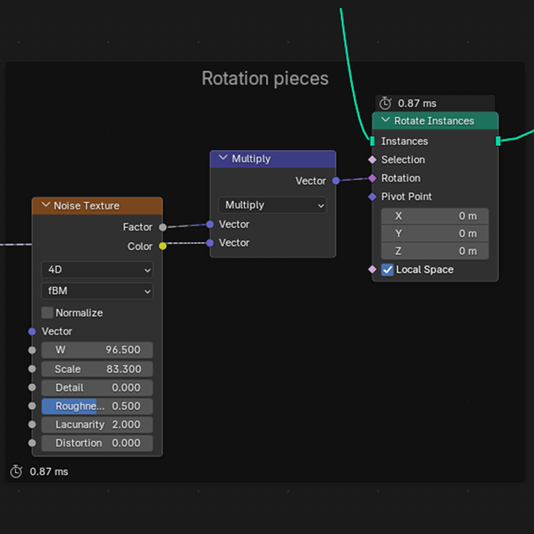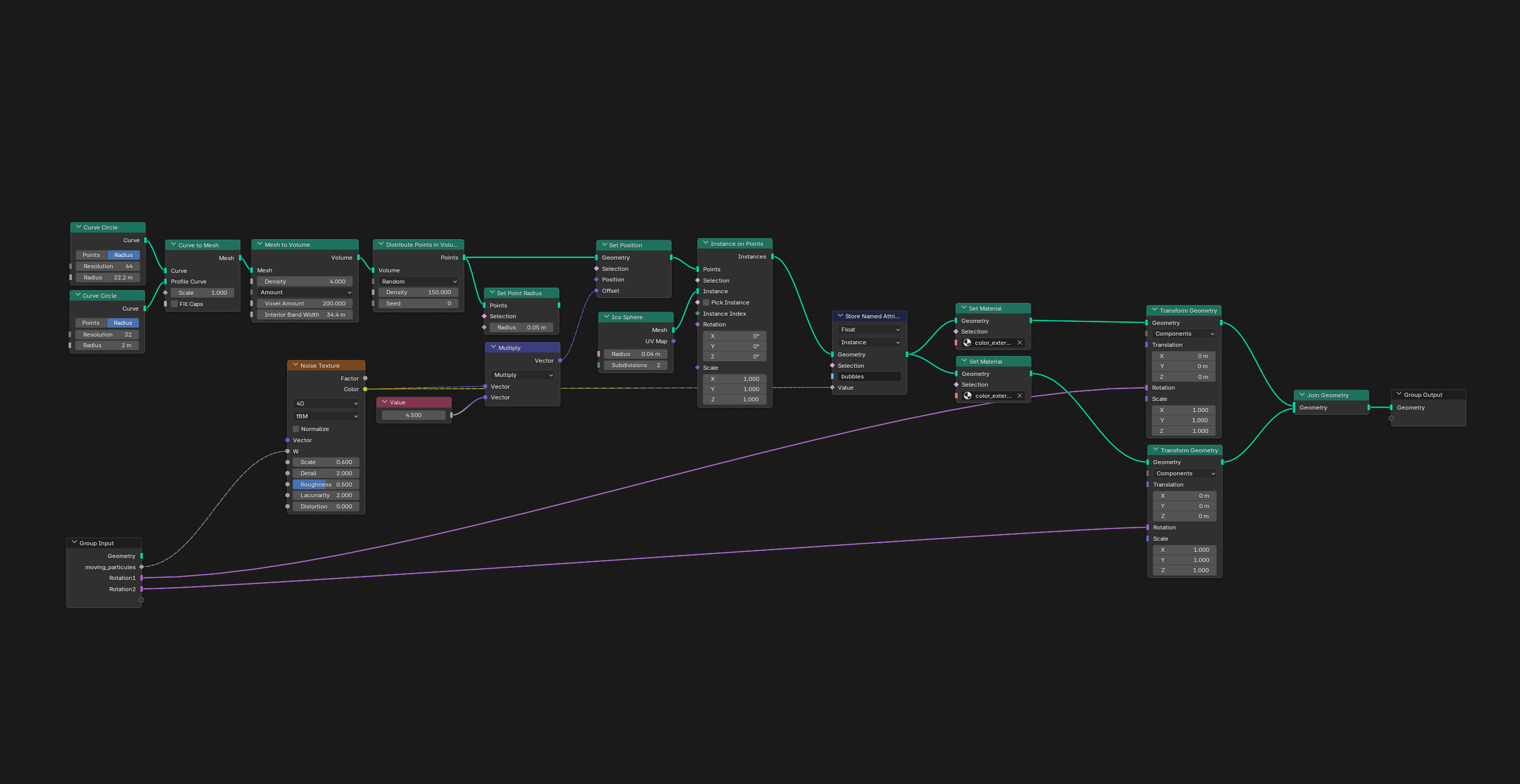 For the core of my artifact, I wanted to create an abstract shape that feels dense and unstable, like the center of an organic bomb from another world. I built a Geometry Nodes modifier and distributed points inside a spherical volume. Then I animated them using a noise node, driven by the progress of each frame, to give the core a living and unpredictable motion.